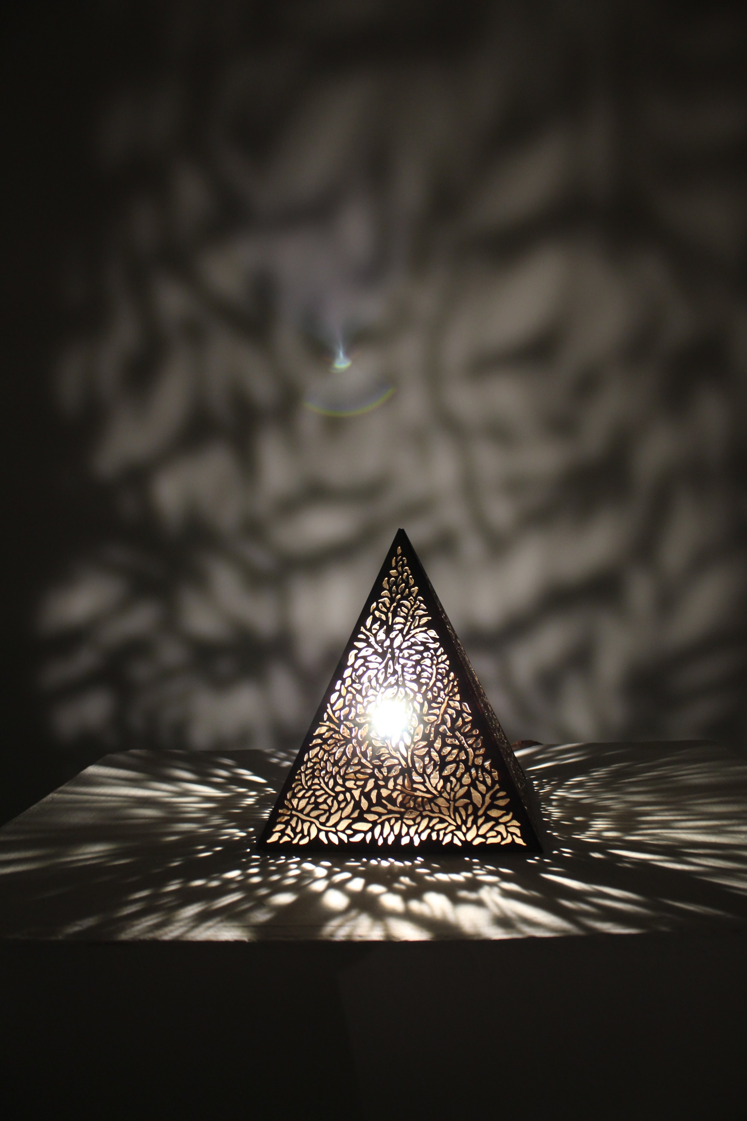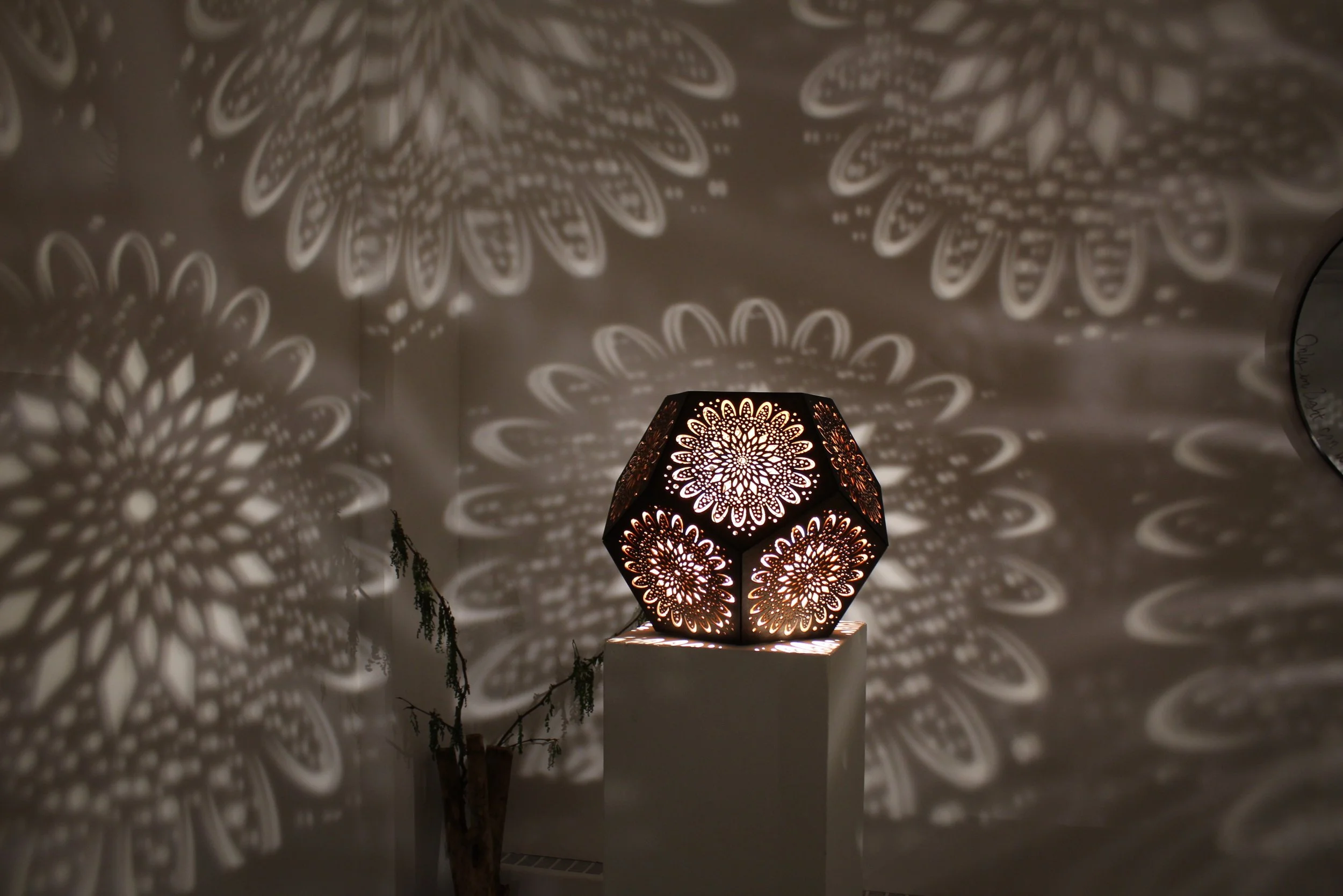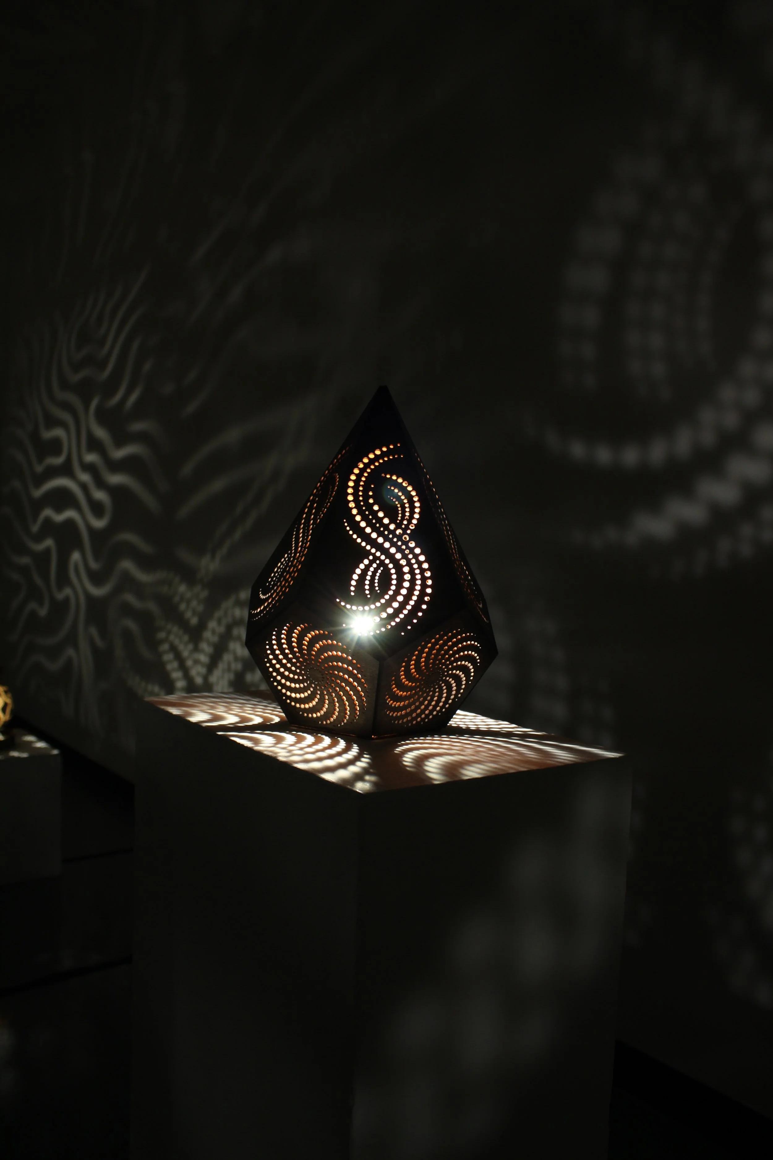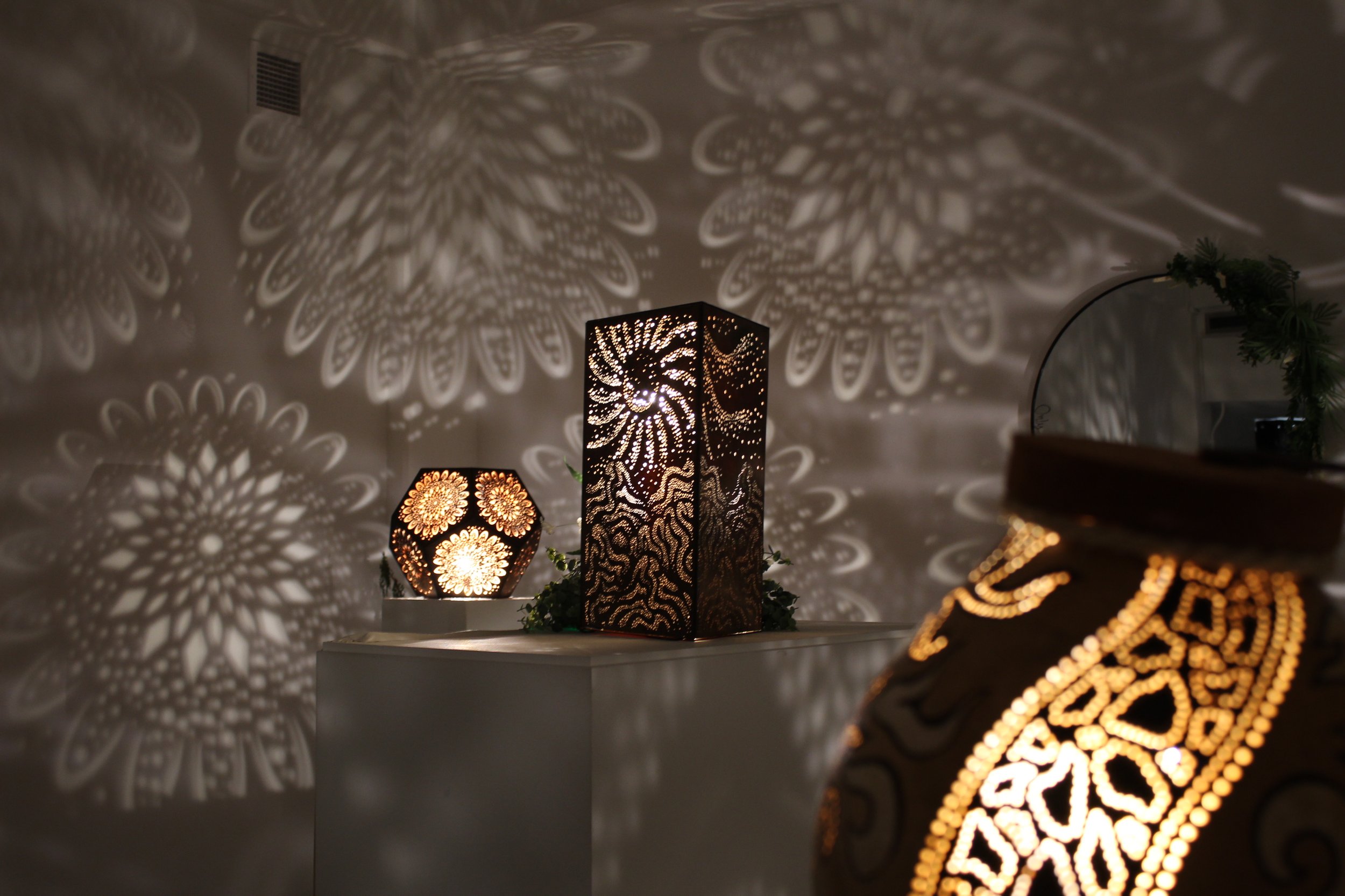 Each piece is crafted from either a single gourd or multiple wood components interconnected to one another, allowing the light to pass through the material, casting shadows as a result. Although all of my designs are inspired by nature, they are each unique in the way they interpret natural forms and characteristics.