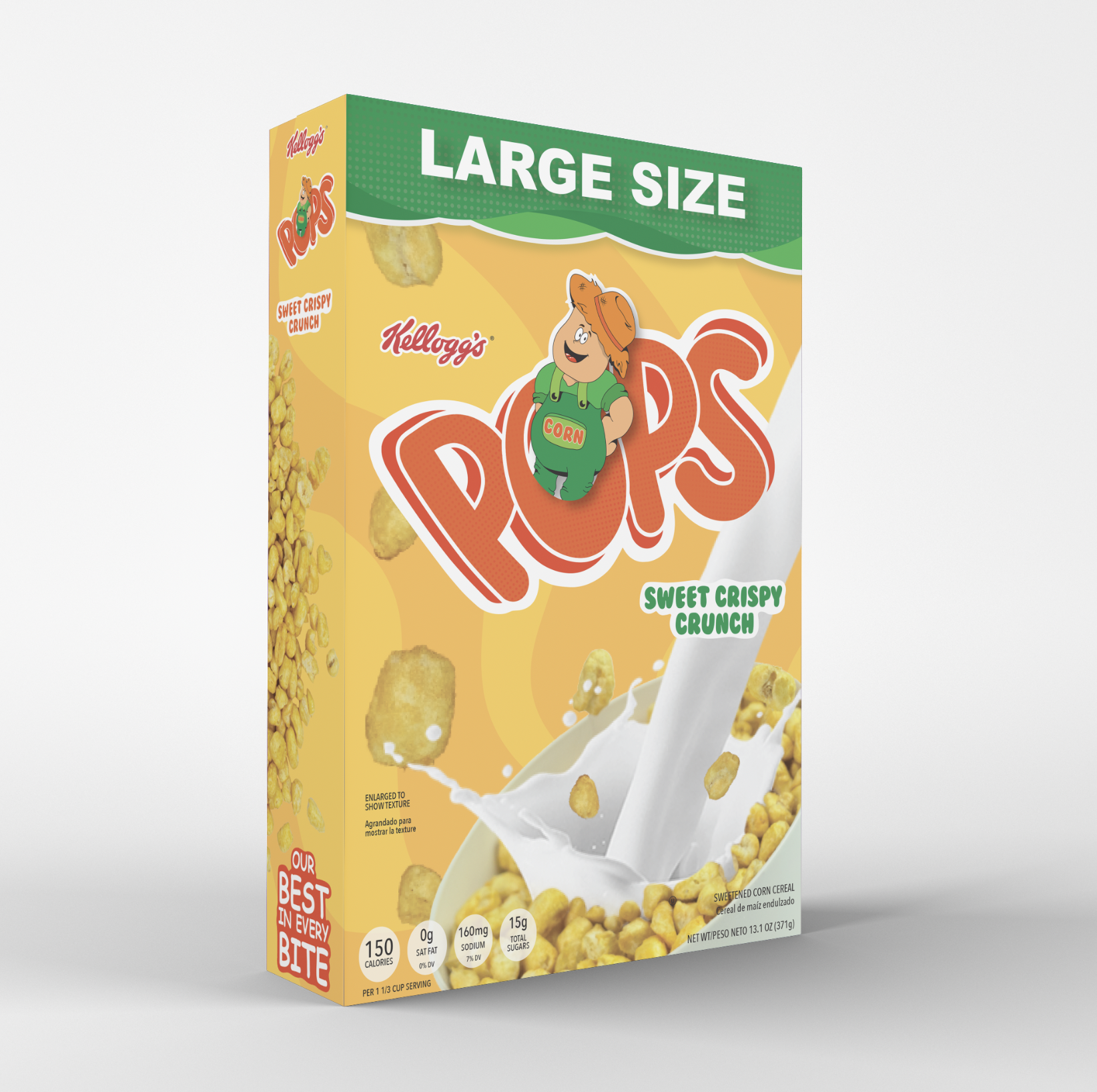 This conceptual redesign of Corn Pops Cereal focuses on refreshing the visual identity and packaging to enhance shelf appeal and create a more engaging experience for consumers. The goal was to design packaging that would attract attention, tell a story, and offer value throughout the entire user journey — from store shelf to breakfast table. To guide the design direction, I began by exploring the competitive landscape of cereal packaging. I studied Corn Pops and its main competitors to evaluate marketing approaches, brand personalities, and packaging structure. I also considered how cereal boxes are placed in stores, the materials used, and what types of visual information are most important to consumers. This research helped define the tone of the redesign and informed decisions about layout, color, content hierarchy, and interactivity.