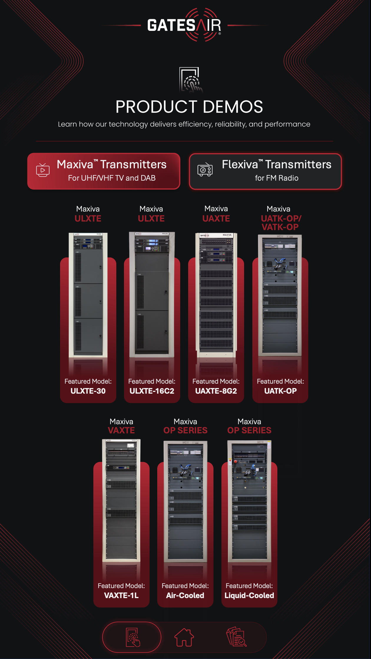 The kiosk consists of 300+ slides built entirely in PowerPoint, which required careful consideration of file size, accessibility, and ease of use. I leveraged native PowerPoint tools such as slide transitions and linked navigation buttons to create a seamless, intuitive experience, while using Adobe Creative Suite to design custom graphics and visual assets. Because GatesAir product offerings and data sheets frequently change, this project is continuously maintained and updated ahead of each trade show to ensure all content is accurate and current.
